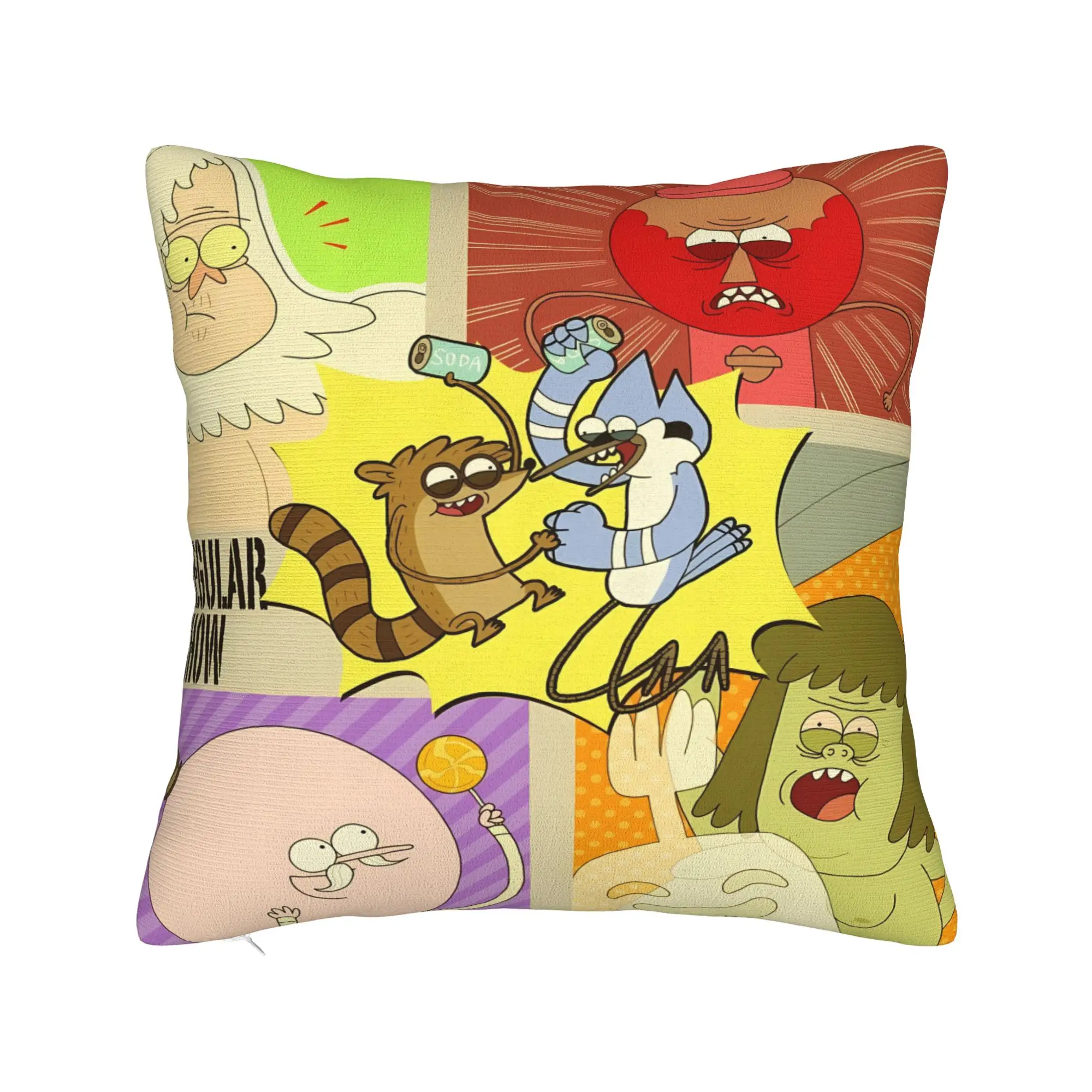 Mordecai and Rigby Vintage Anime Style Decorative Throw Pillow